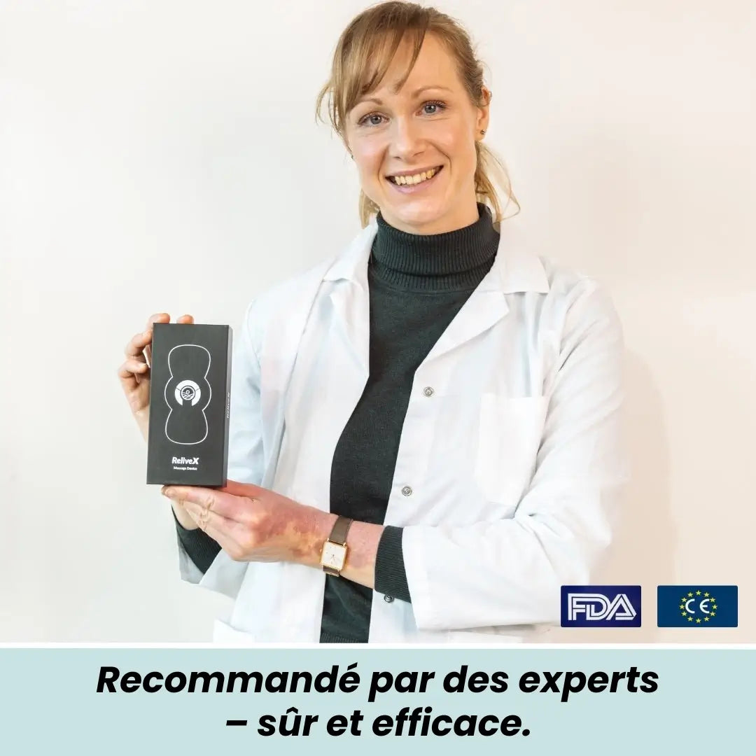 Soulagement immédiat des douleurs dorsales (chroniques), hernies, névralgies ou raideurs aux épaules – sans médicaments ni kiné. Le Masseur ReliveX détend vos muscles en profondeur grâce à la technologie NMES – tout simplement à la maison, en 15 minutes par jour.
