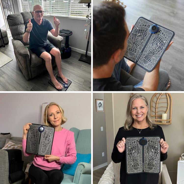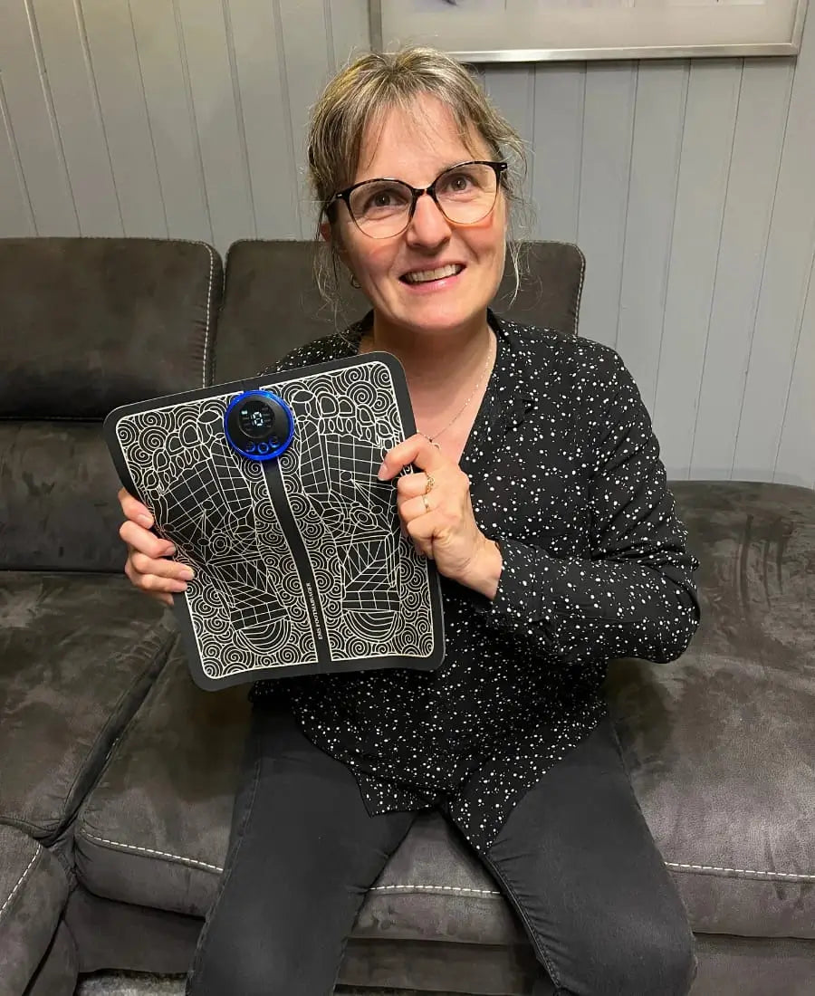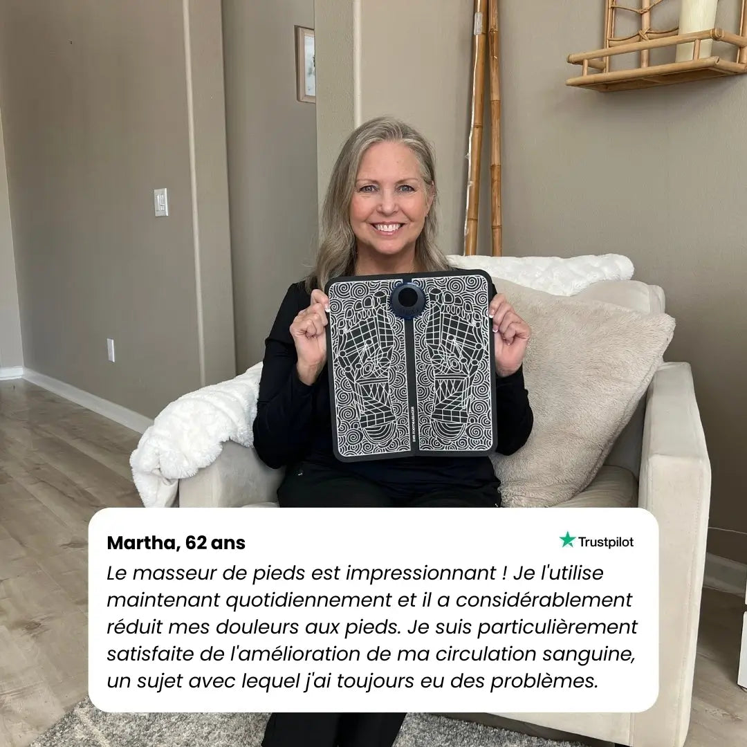 Le masseur de pieds Nofela® utilise la technologie NMES pour activer la circulation sanguine et aide à réduire les douleurs, les picotements et les gonflements – simplement chez vous, sans médicaments ni consultations médicales.