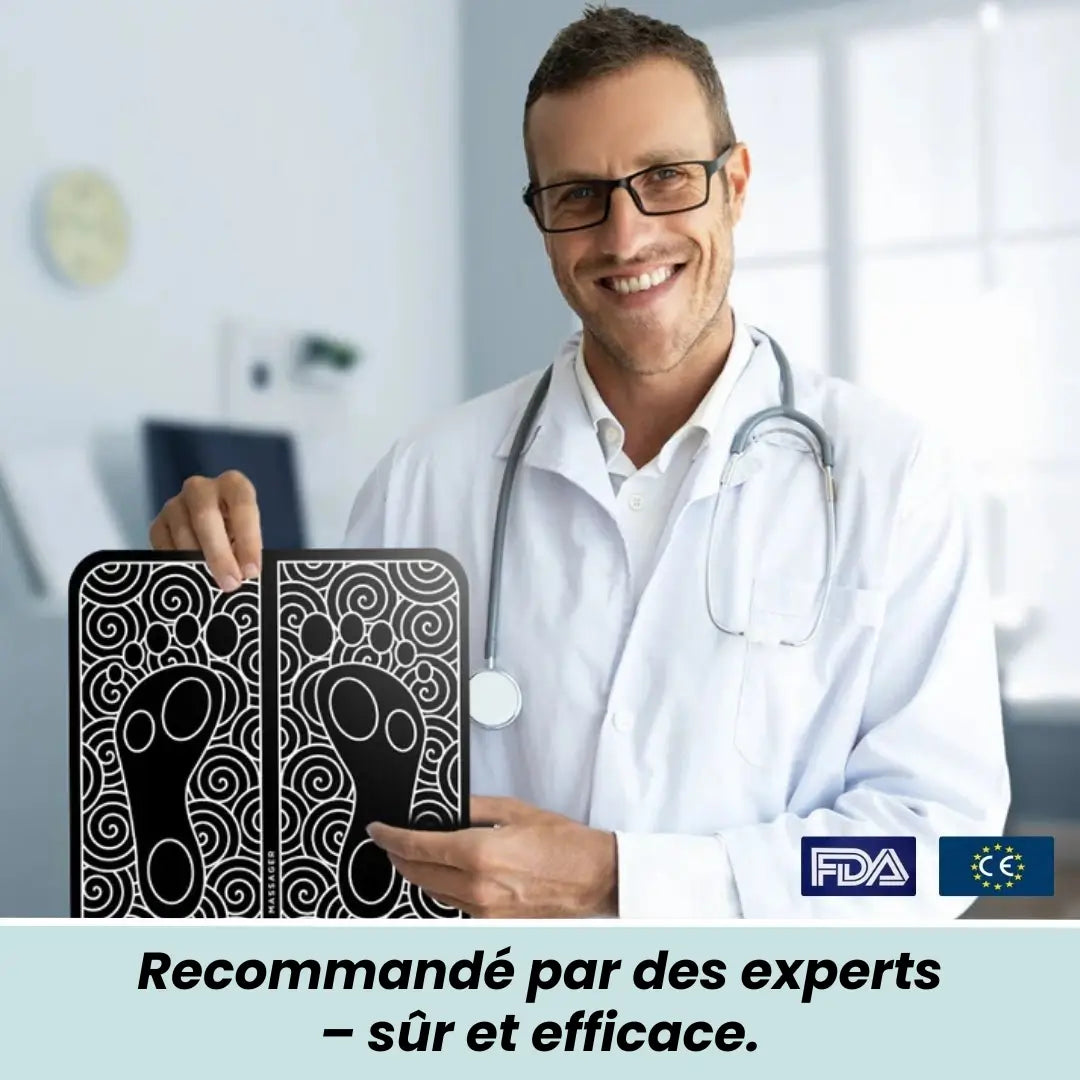 Le masseur de pieds Nofela® utilise la stimulation électrique neuromusculaire (NMES), une technologie avancée utilisée par les spécialistes et dans les hôpitaux du monde entier.