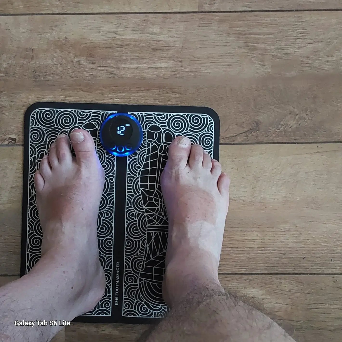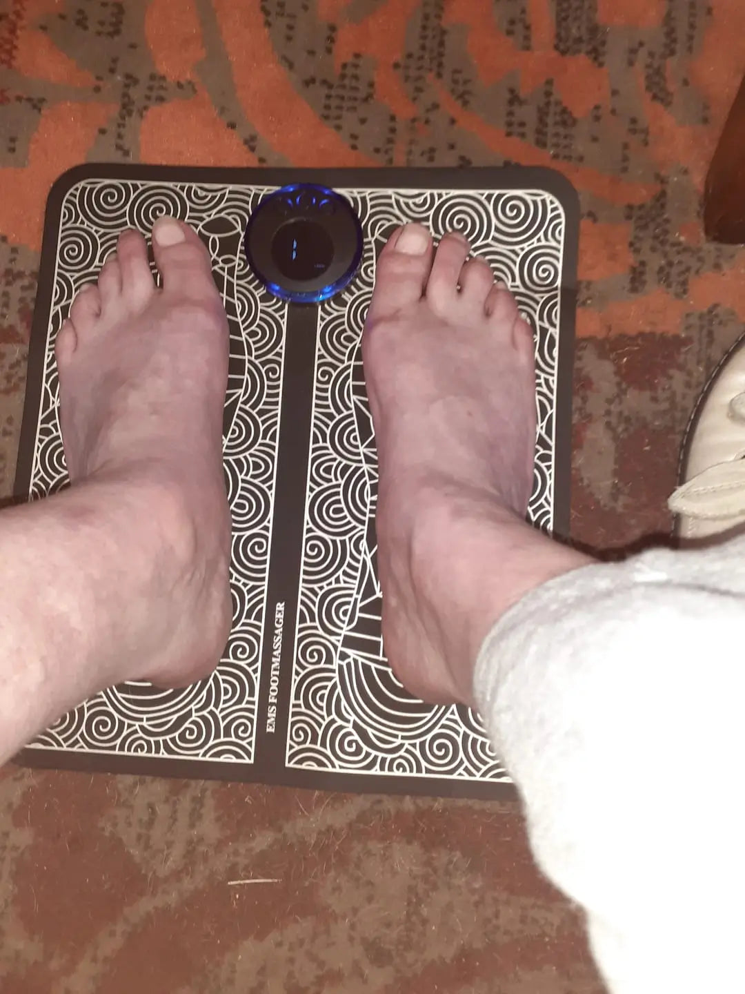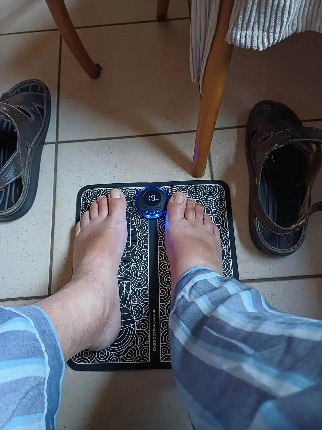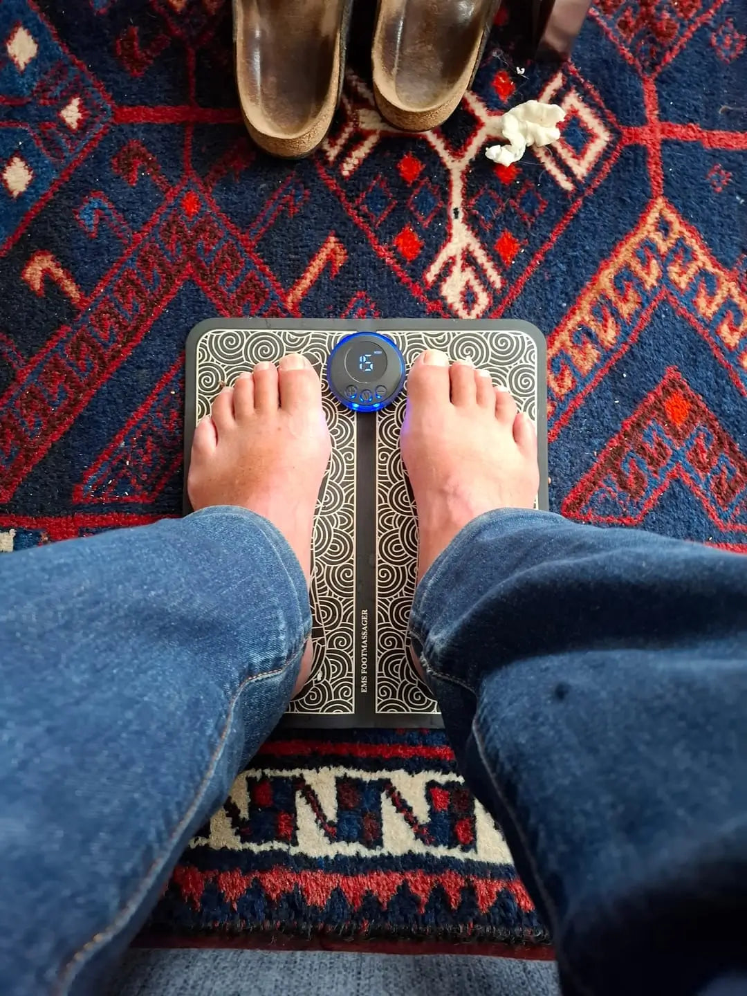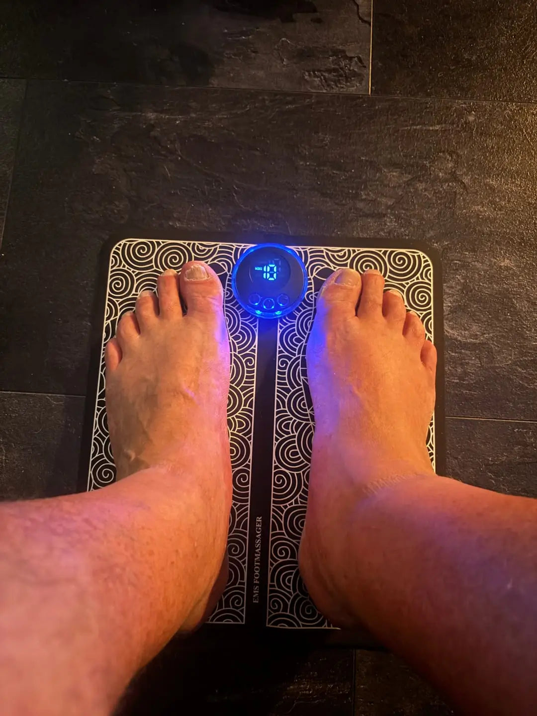 - Placez vos pieds sur le tapis de massage